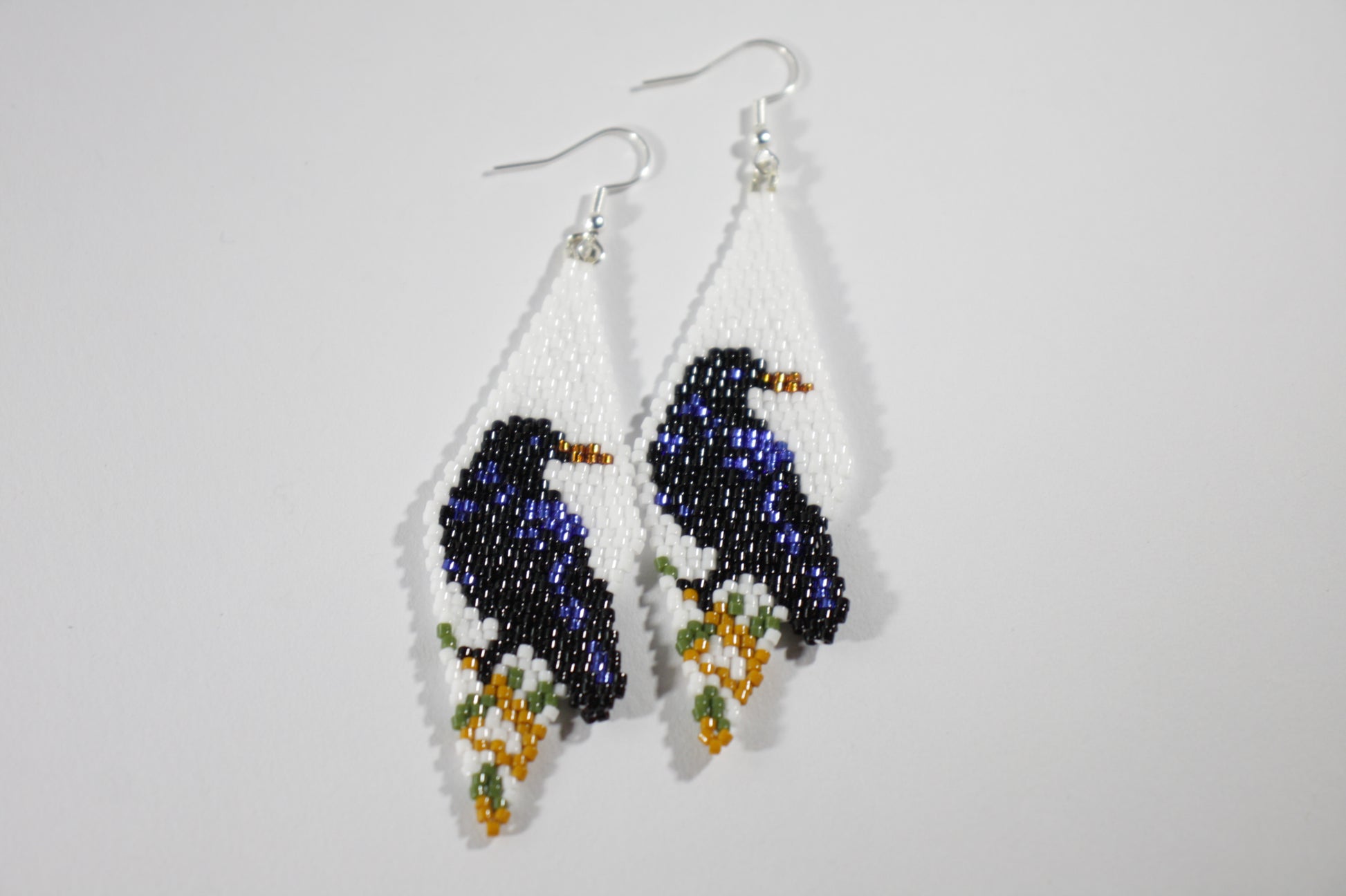 Handwoven Raven Diamond Earrings – Seed Bead Jewelry